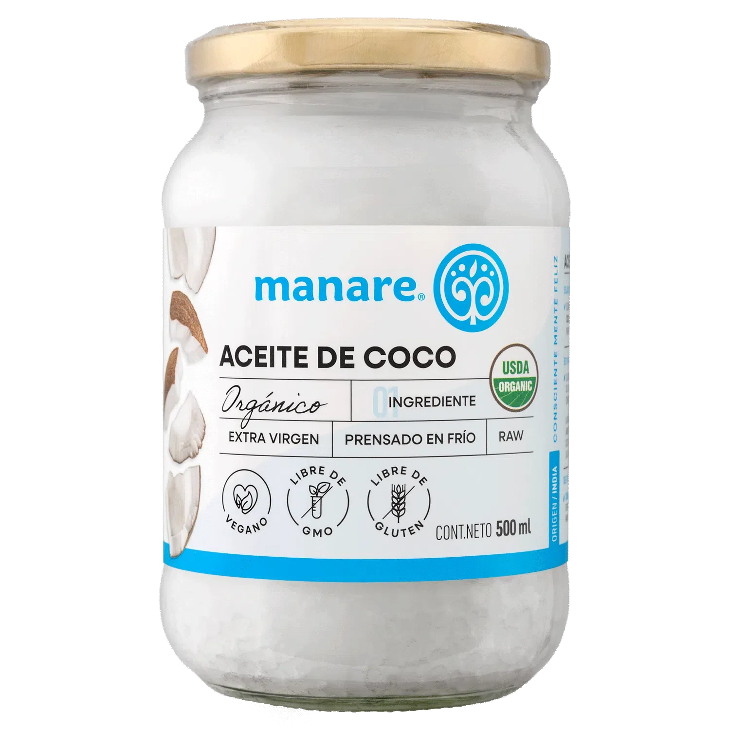 - Manchas en el fondo del envase en tonos amarillos y/o marrones ocurren debido a la presencia de partes naturales del coco en el aceite y no afectan las propiedades ni calidad del producto.