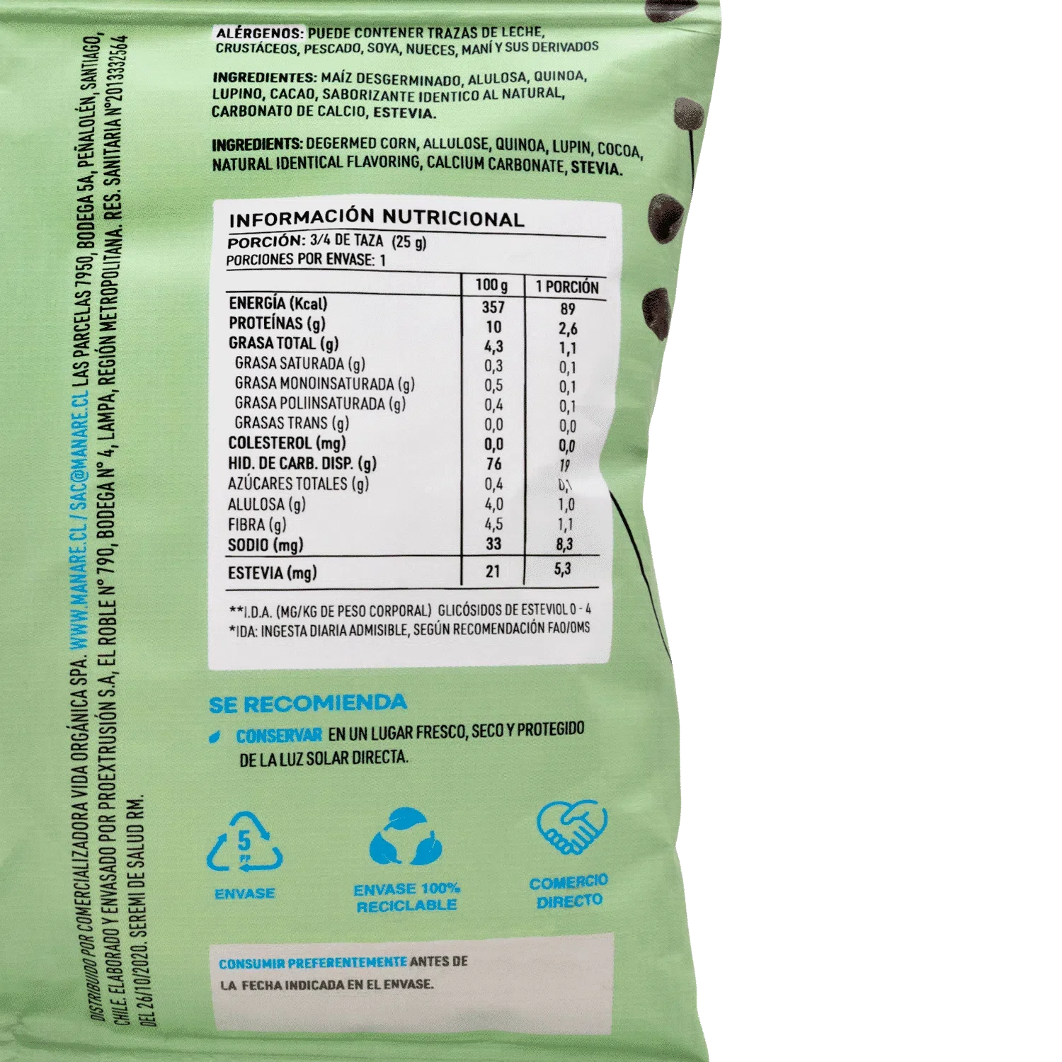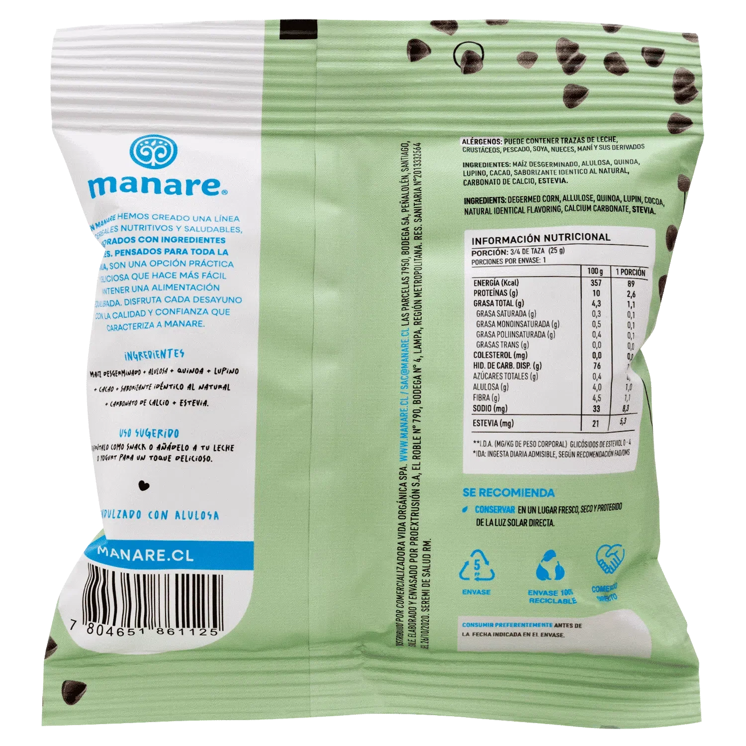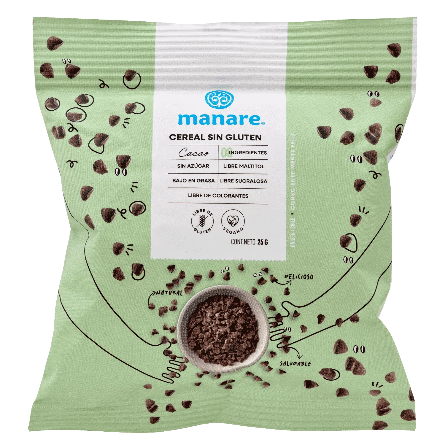Cereal sin gluten con cacao 25 gramos Marca Manare