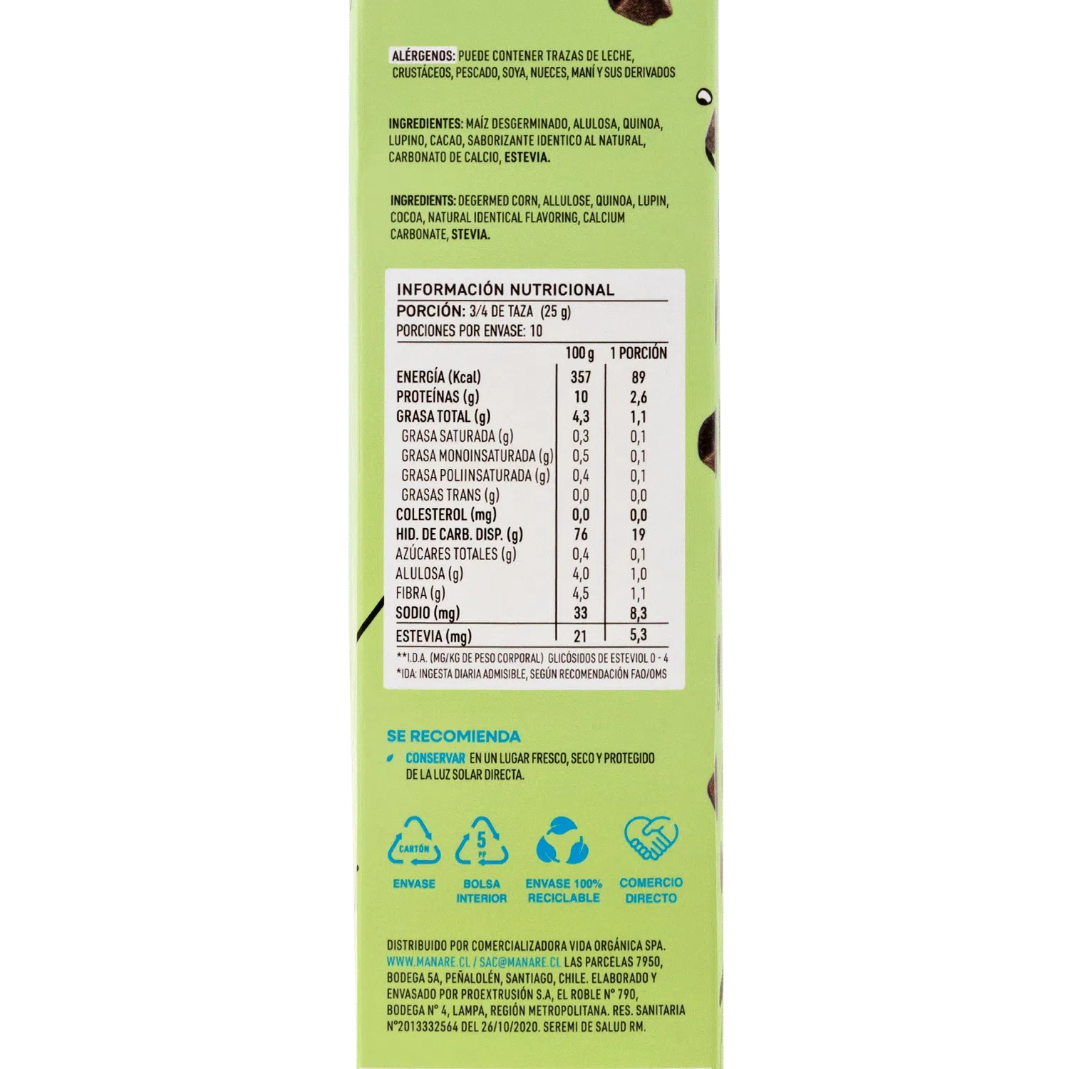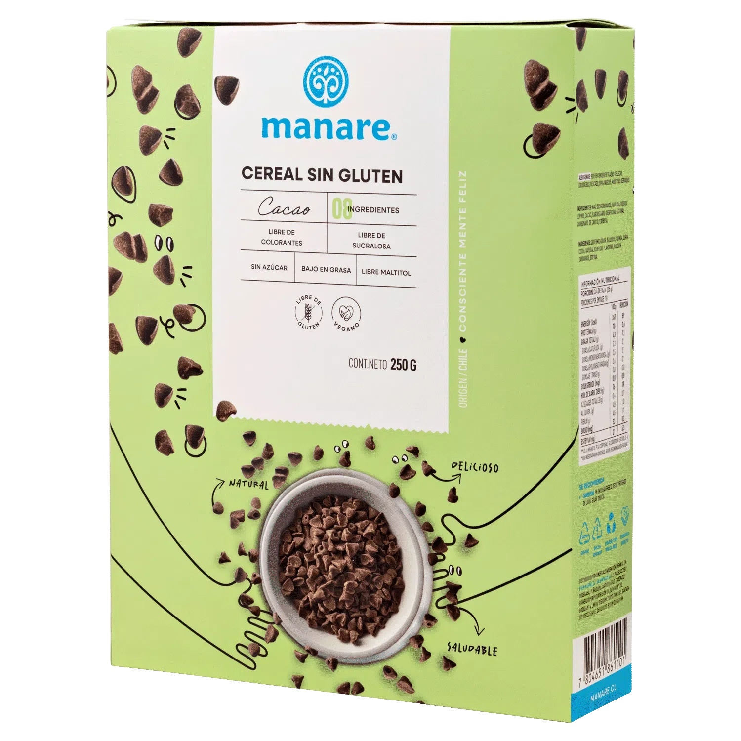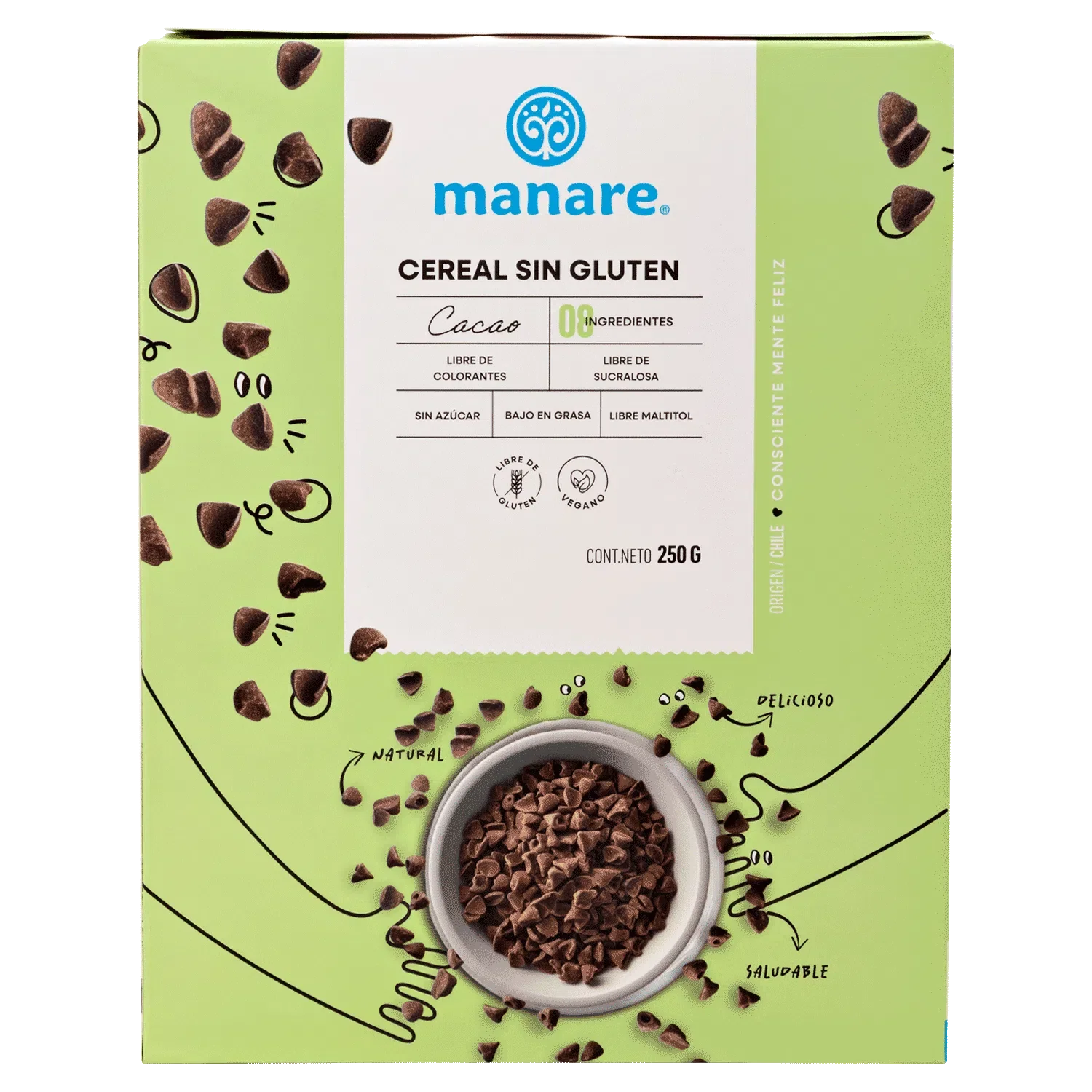 Cereal sin gluten con cacao 250 gramos Marca Manare