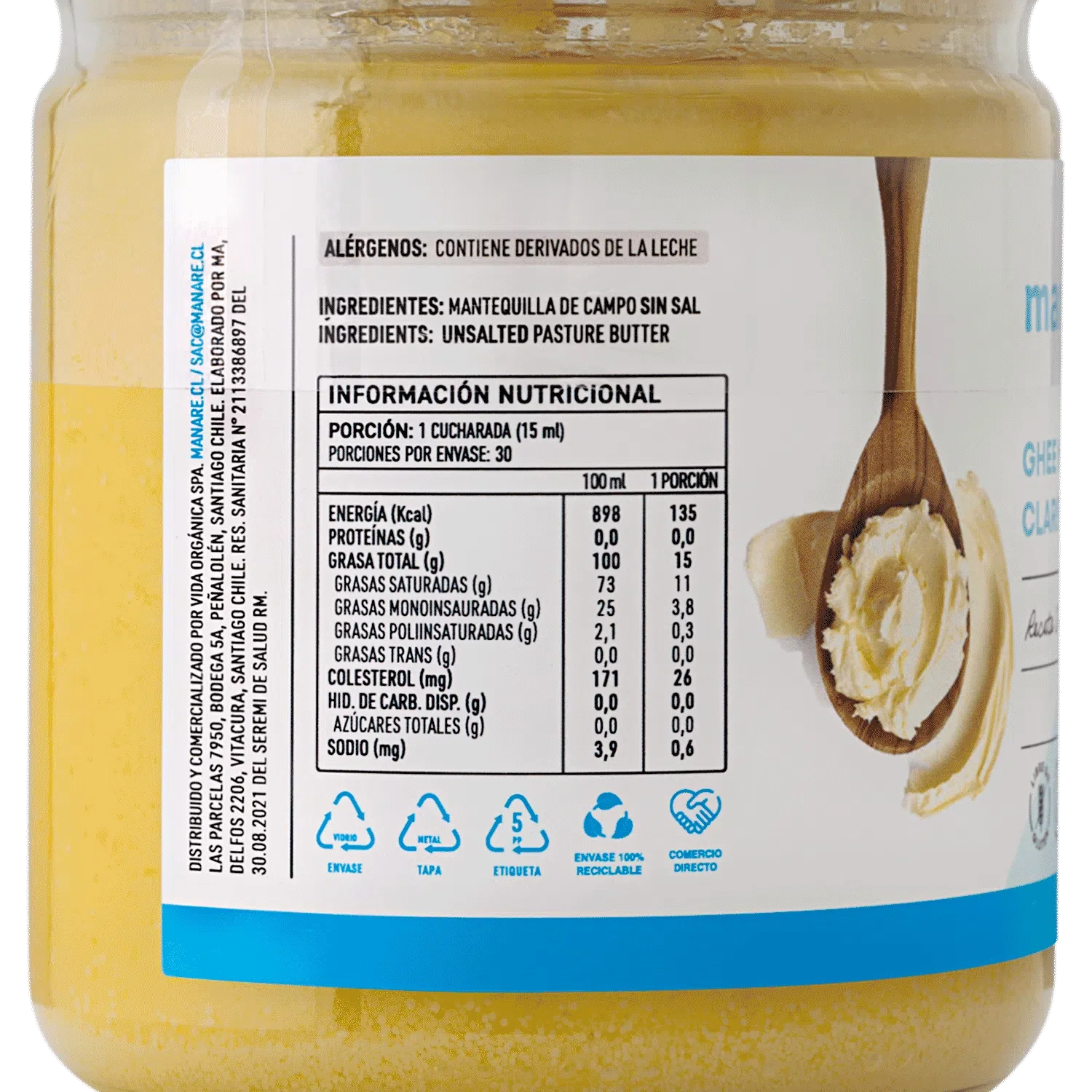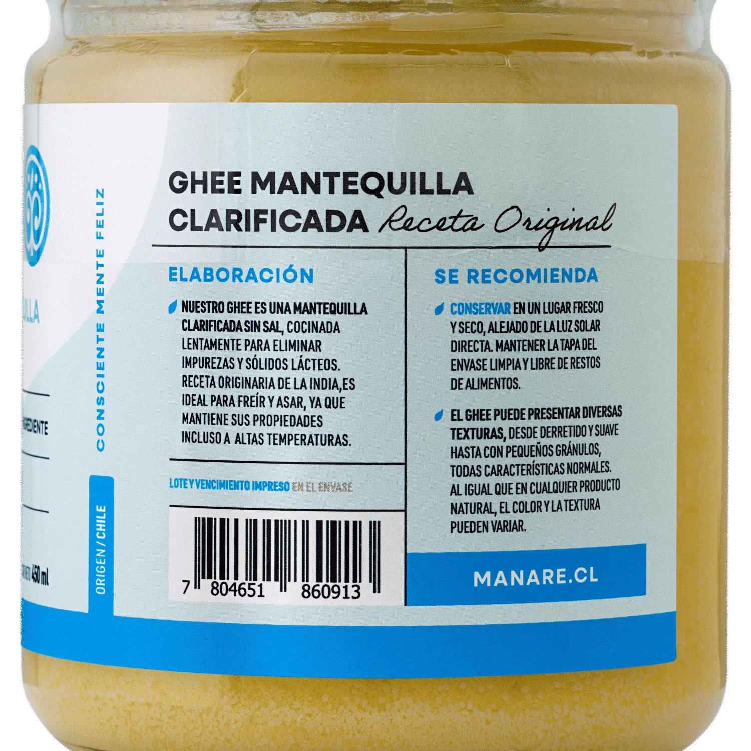 Ghee mantequilla clarificada sin gluten 450 ml Marca Manare
